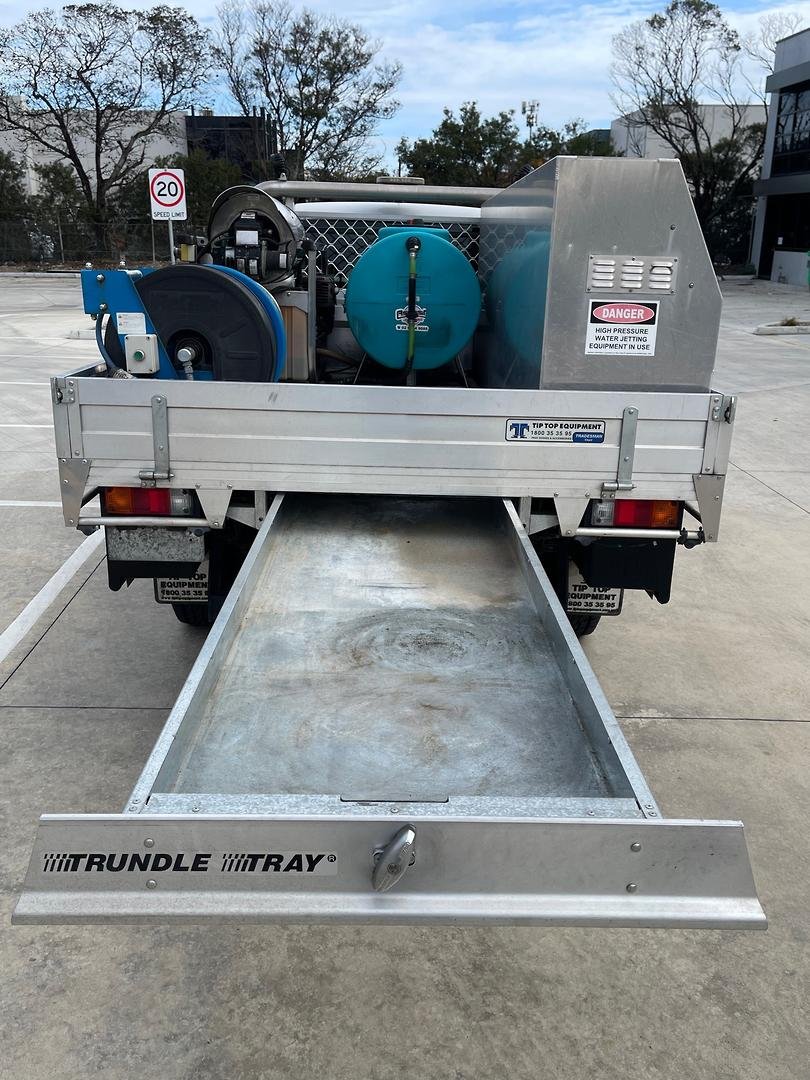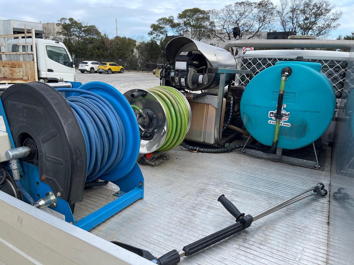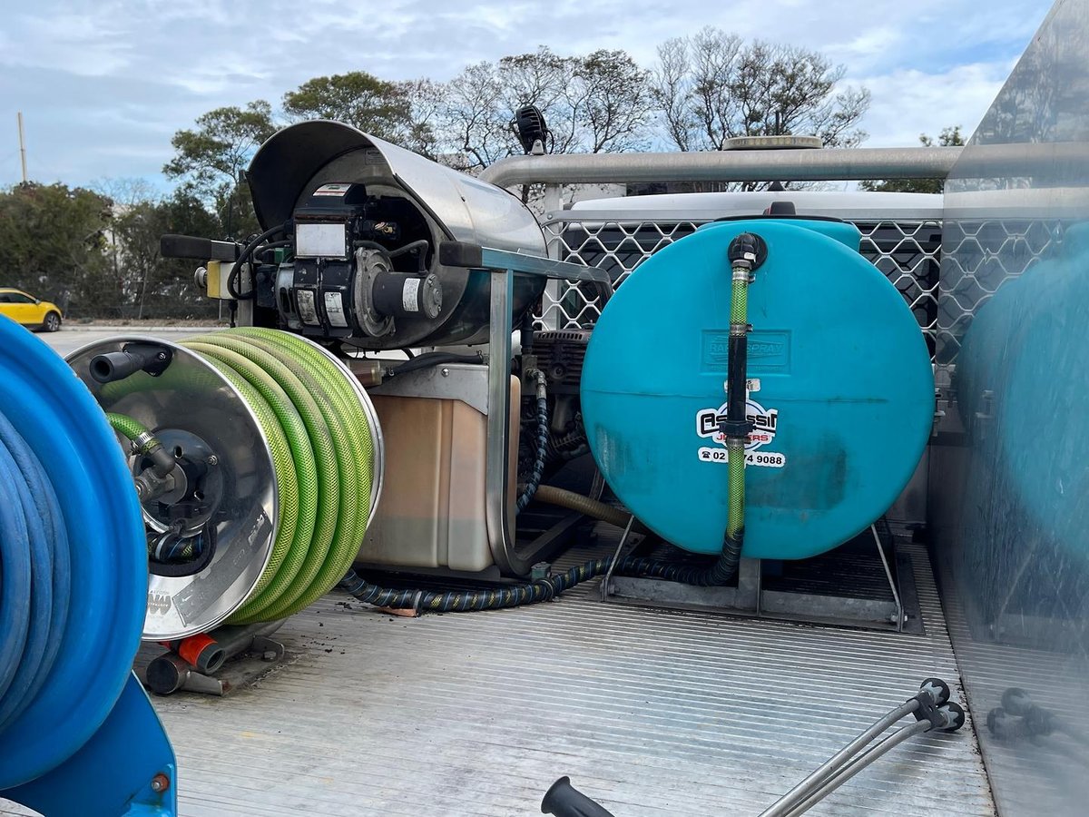 • 200L Water Tank: Heavy-duty poly tank with a secure steel frame for mobile operations.