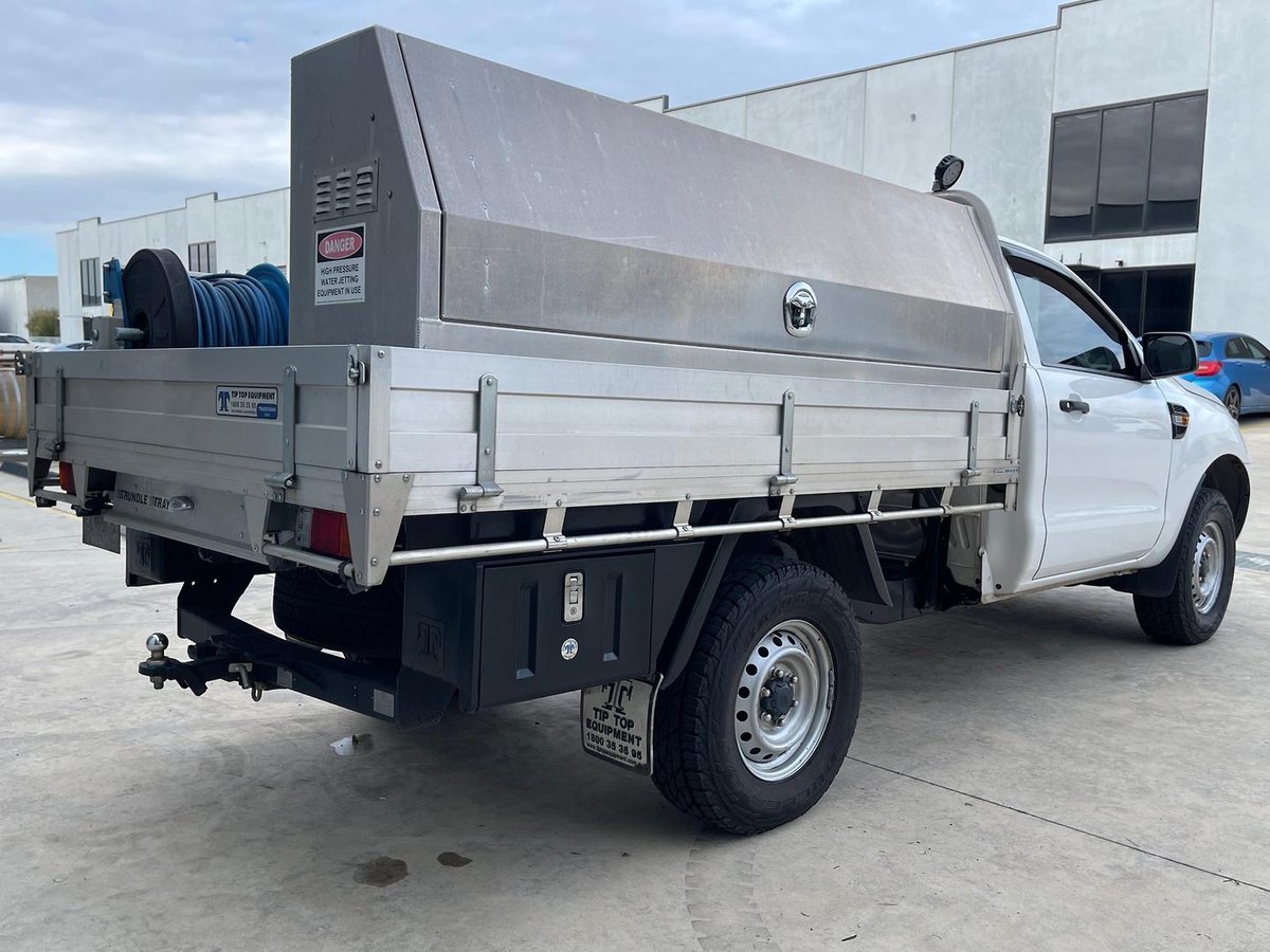 • Body: Single Cab Chassis with heavy-duty tray and lockable toolboxes.